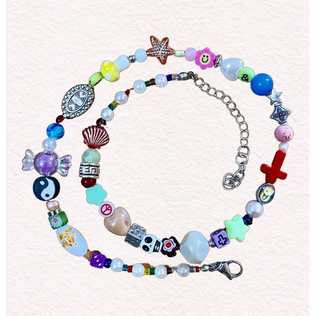 長さ: 約52cm ( 内アジャスター7cm) 素材: ポリマークレイビーズ、、ガラスビーズ、磁器ビーズ、アクリルビーズ、メッキ、プラスティック等( ※エンドパーツの留め具の部分は304ステレンレススチール素材) ※ステンレス鋼を採用しており、防錆性・耐久性に優れて、非常に頑丈で長持ちでき、汗や水により濡れても錆びたり汚れたりすることがありません。