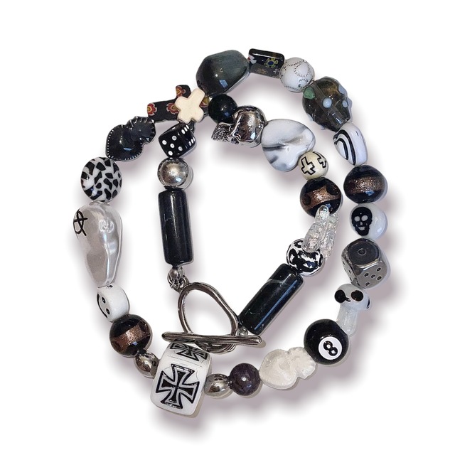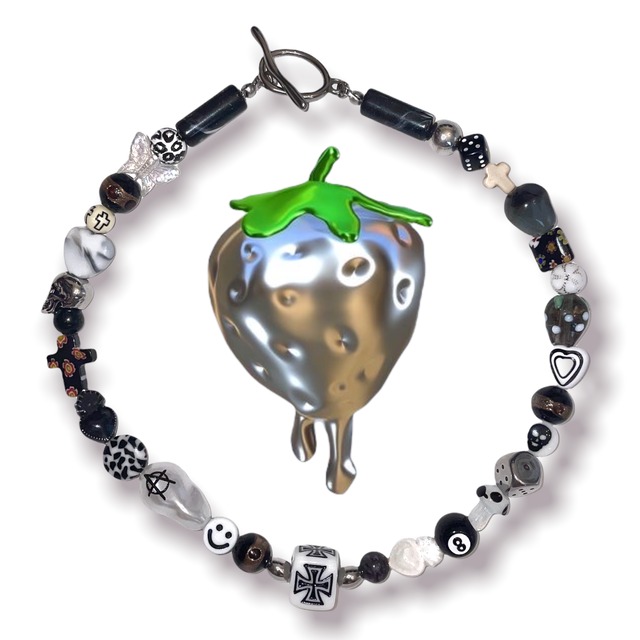 長さ: 約41cm 素材: ステンレス / 淡水バロックパール / 樹脂パール / ガラス / アクリル / 真鍮 / ポリマークレイ / 陶器 ・留め具のマンテル部分は*304ステレンレススチール素材 *ステンレス鋼を採用しており、防錆性・耐久性に優れて、非常に頑丈で長持ちでき、汗や水により濡れても錆びたり汚れたりすることがありません。 ※ この商品はハンドメイドで制作していますので強い力や衝撃等は破損の原因となります。用途以外のご使用、取り扱いには十分気をつけ下さい