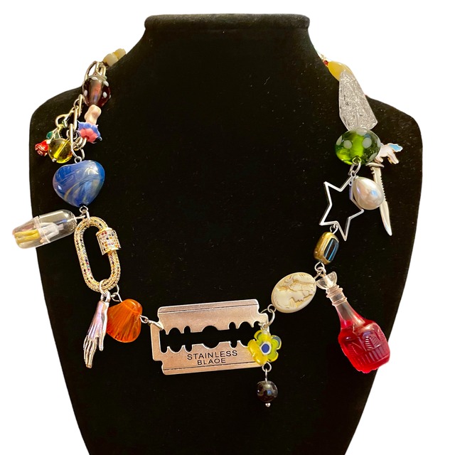 長さ: 最大約50cm (内5cmアジャスター可) 素材: ステンレス / 淡水バロックパール / ガラスビーズ / アクリル / 真鍮 / 陶器 ※ この商品はハンドメイドで制作していますので強い力や衝撃等は破損の原因となります。用途以外のご使用、取り扱いには十分気をつけ下さい