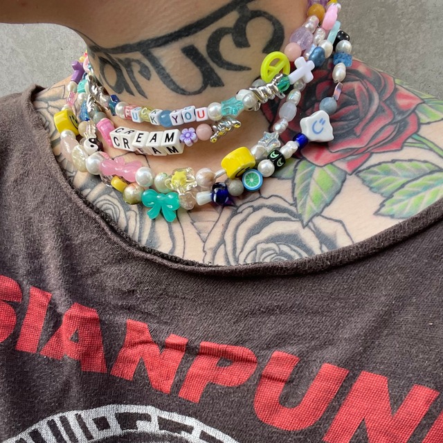 ※ この商品はハンドメイドで制作していますので強い力や衝撃等は破損の原因となります。用途以外のご使用、取り扱いには十分気をつけ下さい。また海外製のビーズを使用してる為、一部のビーズにスレや摩擦などの傷等がございます、ご了承くださいませ。