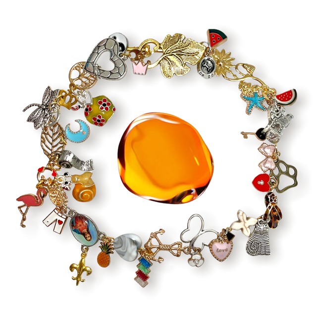 素材: ガラスビーズ / アクリルビーズ / 真鍮 / プラスチック / 陶器