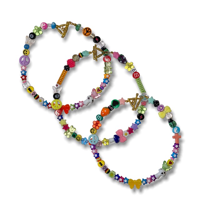 素材: ガラスビーズ / アクリルビーズ / 真鍮 / プラスチック / 陶器